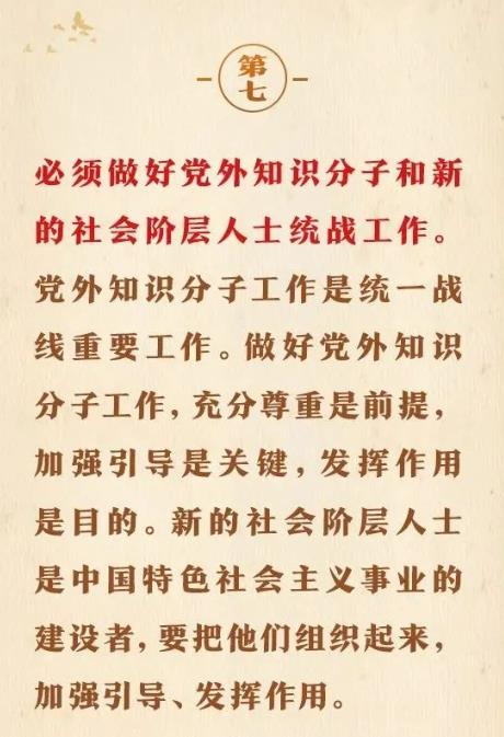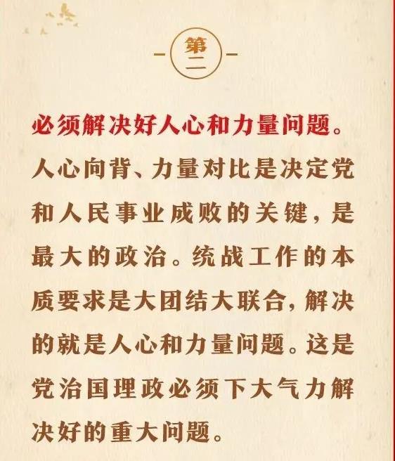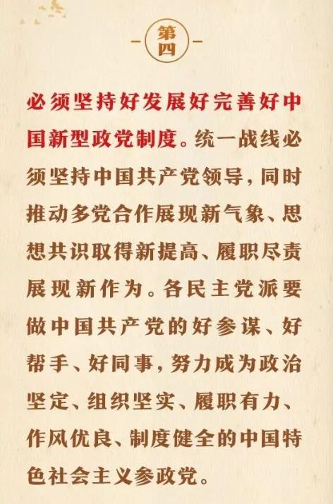 1月16日出版的第2期《求是》雜志刊發(fā)習(xí)近平總書記重要文章《完整、準(zhǔn)確、全面貫徹落實(shí)關(guān)于做好新時(shí)代黨的統(tǒng)一戰(zhàn)線工作的重要思想》。在這篇重要文章中,習(xí)近平總書記充分肯定我們黨百年統(tǒng)戰(zhàn)的歷史性貢獻(xiàn)和新時(shí)代統(tǒng)戰(zhàn)工作取得的歷史性成就,用“十二個(gè)必須”對(duì)關(guān)于做好新時(shí)代黨的統(tǒng)一戰(zhàn)線工作的重要思想作出概括,強(qiáng)調(diào)關(guān)于做好新時(shí)代黨的統(tǒng)一戰(zhàn)線工作的重要思想,是黨的統(tǒng)一戰(zhàn)線百年發(fā)展史的智慧結(jié)晶,是新時(shí)代統(tǒng)戰(zhàn)工作的根本指針,全黨必須完整、準(zhǔn)確、全面貫徹落實(shí)。